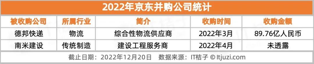 阿里&京东:2021 年和 2022 年 均并购 2 家公司