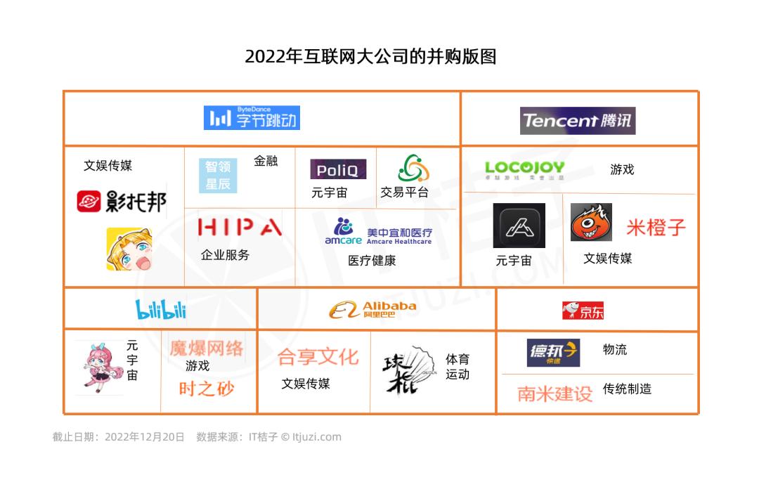 但在一级市场投资整体低迷且反垄断政策持续影响下的 2022 年,这些互联网大公司的并购热情是否有所降低?