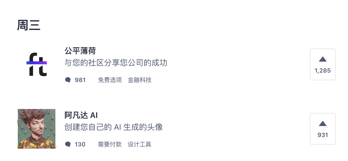 在 11 月初打开 Product Hunt(一个发现新产品的平台,开发者可以提交自己的产品,网站会依据大众的投票数量产生每日榜单),会发现每天都有新的 AI 作画产品上线,并且这些 AI 作画产品,都在每天榜单的前几名。