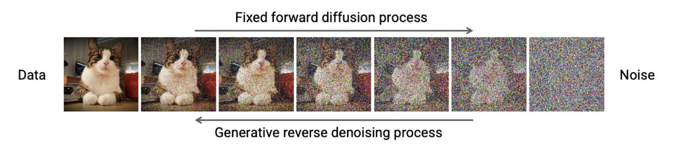 随着热度升温,可能会取而代之的是 Diffusion。Denoising Diffusion Models(去躁扩散模型)作为一种基于分数的生成模型,是一种非常强大的新型生成模型。其工作原理就是通过反复地向训练数据添加高斯噪声来破坏训练数据,然后通过反转添加噪声的过程来学习如何取回数据。Diffusion 还提供大量样本多样性和学习数据分布的准确模式覆盖,这意味着 Diffusion 适用于具有大量不同和复杂数据的学习模型,从而解决了 GAN 的问题。Diffusion 缓慢改变输入数据将数据映射到噪声的正向变换,通过学习的、参数化的反向过程来完成数据生成。该过程从随机噪声开始,一次一步地进行清理。