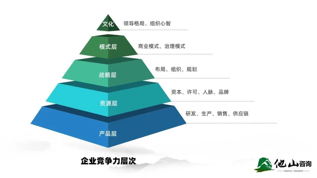 企业竞争力的最高层次体现在文化层,也就是领导格局和组织心智。如果大家对很多社会发展、自然和人的规律,不在一个认知水平上,就没有办法真正的PK。张一鸣经常讲,好的企业是因为有好的产品,好的产品是因为有好的人才,好的人才是因为有好的文化。而认知水平决定了企业的水平。