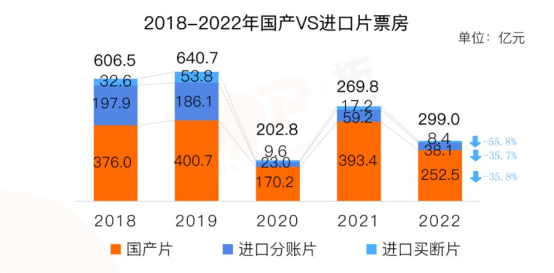 灯塔数据显示,2022年引进片仅贡献了全年15%的票房,曾经外片占到四成票房、在国内市场大杀四方的时代已经走远了。年末的时候,博纳影业董事长于冬公开表示“国外电影已经不再适合中国观众,他们更喜欢国产电影”,虽然言论引发不少网友的争议讨论,但从数据结果来看,趋势愈发明显了。