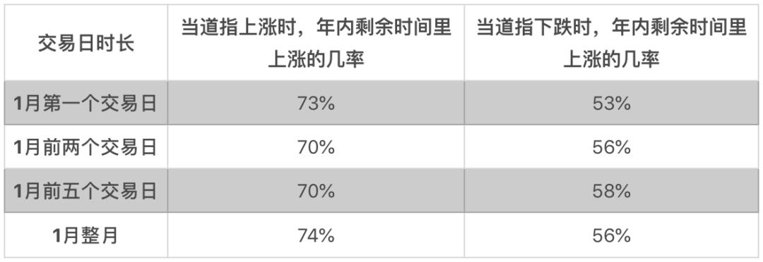 赫尔伯特指出,可以看出,如果股市在1月的前几个交易日上涨,在年内剩余时间里上涨的可能性更大。但值得注意的是,即便股市在头几个交易日下跌,年内剩余时间里上涨的几率仍在50%以上。