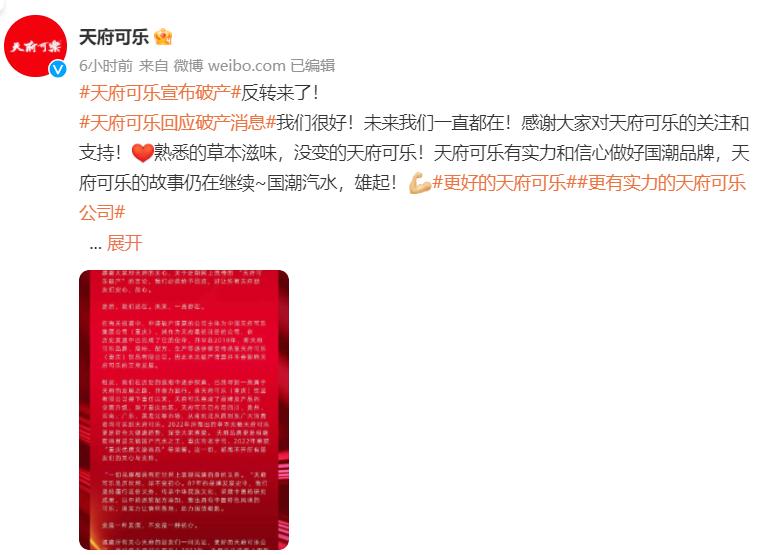 国产可乐巨头破产?公司回应:我们很好