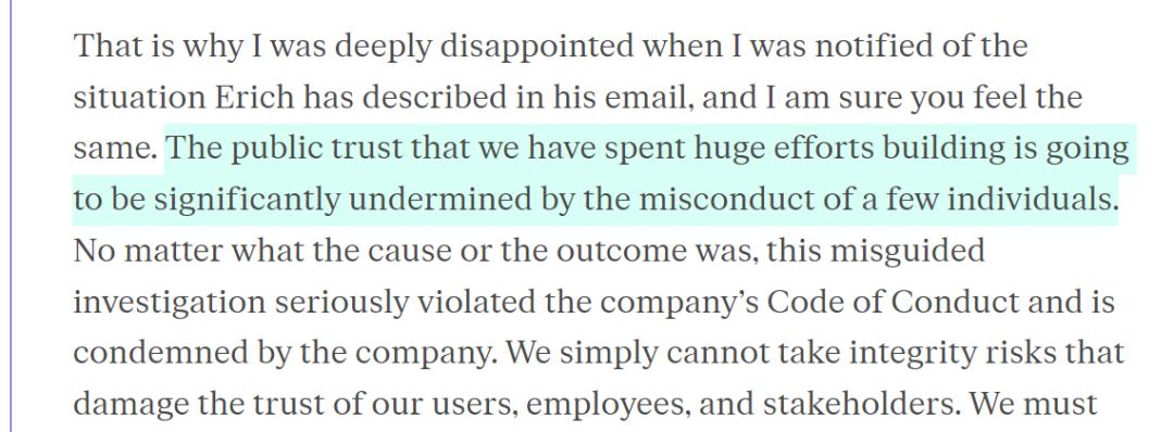 正是因为做了很多,才会有此次舆论发酵后,字节 CEO 梁汝波在邮件中表示全体员工此前花费巨大努力建立的信任因为少数人的不当行为付诸东流。