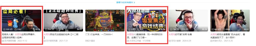 现在你直接在B站搜索“大司马”,还会发现关联度最高的是一个拥有320万播放量的《鹅鸭杀》单局剪辑。
