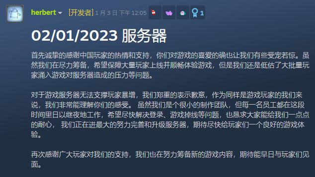 据SteamDB数据,这款游戏历史最高在线人数已经达到47万,同时在线人数曾一度超过《Apex》等竞技类游戏。再加上官方专门感谢中国玩家的消息,不难推测出,这次服务器崩溃的起因应该是大量中国玩家涌入游戏。