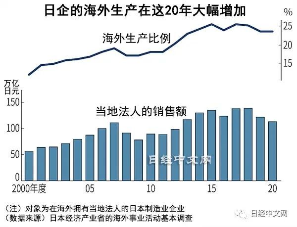 此前,日本企业着眼于人工费的低廉和税制优惠等,不断将生产转移至海外。日本经济产业省的数据显示,制造业的海外生产比例截至2020年度达到23.6%。相比2000年度提高10个百分点以上。但是,以日元贬值和原材料涨价为背景,趋势正在发生改变。