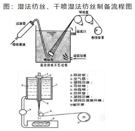 原丝制备有两种工艺,行业龙头日本东丽T700、T800和T1000采用干喷湿法纺丝,其他为湿法纺丝。