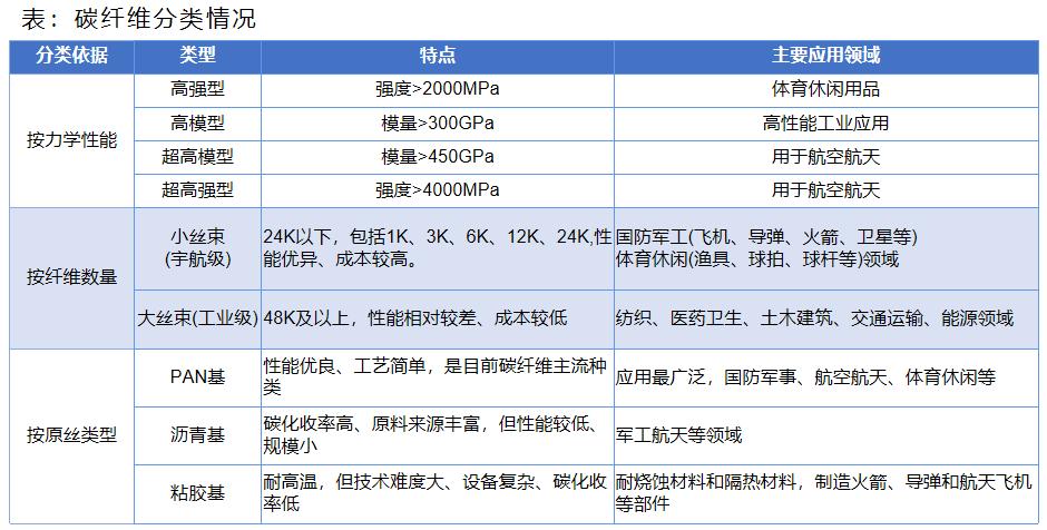 碳纤维可按照力学性能、纤维数量、原丝类型进行分类