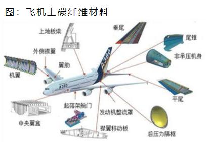 产业链下游-航空航天:大致可分为民用航空和军用航空。民用航空方面,碳纤维可用于制作机翼、机身、舵和发动机、座椅、舱口、特定隔板等;军用航空方面,碳纤维可用于制造战斗机的雷达透明天线罩、前缘舵面翼、机身壁板以及直升机的旋翼叶片、转子轮毂等。