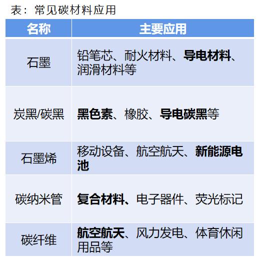 石墨、炭黑、石墨烯、碳纳米管、碳纤维都是由大量的碳元素组成的材料。具有相近的分子结构,拥有相近理化性能,有耐高温、导电导热、润滑、化学性能稳定等特点。