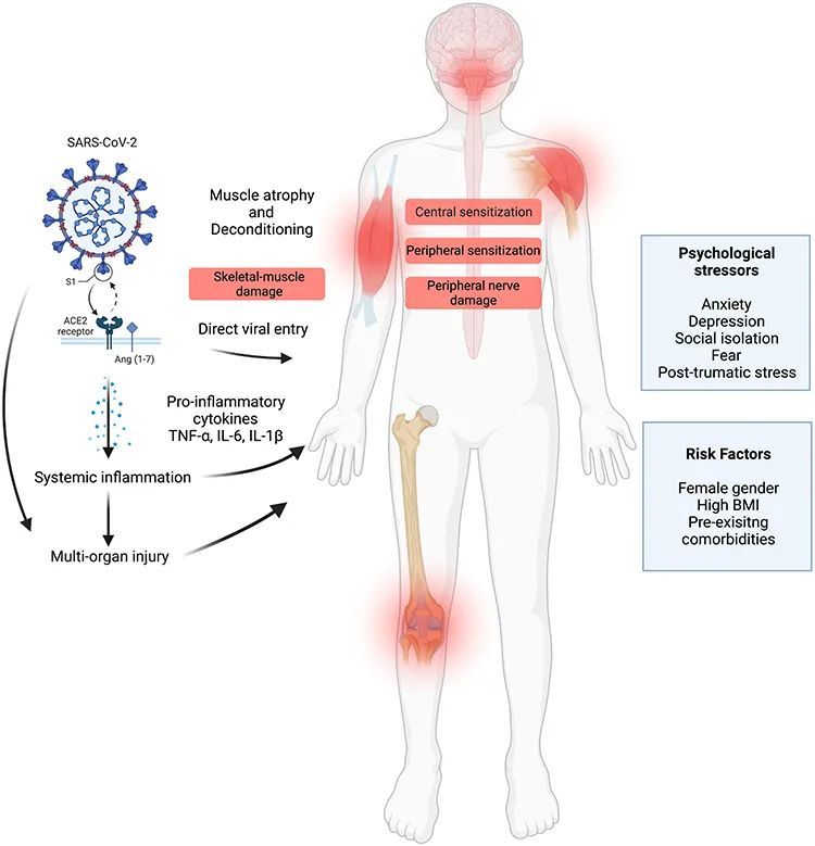 虽然目前的医学科研尚未发现呼吸道病毒新冠与肌肉酸痛的直接联系,但却证实了新冠病毒会引发肌肉组织炎症,从而造成疼痛。