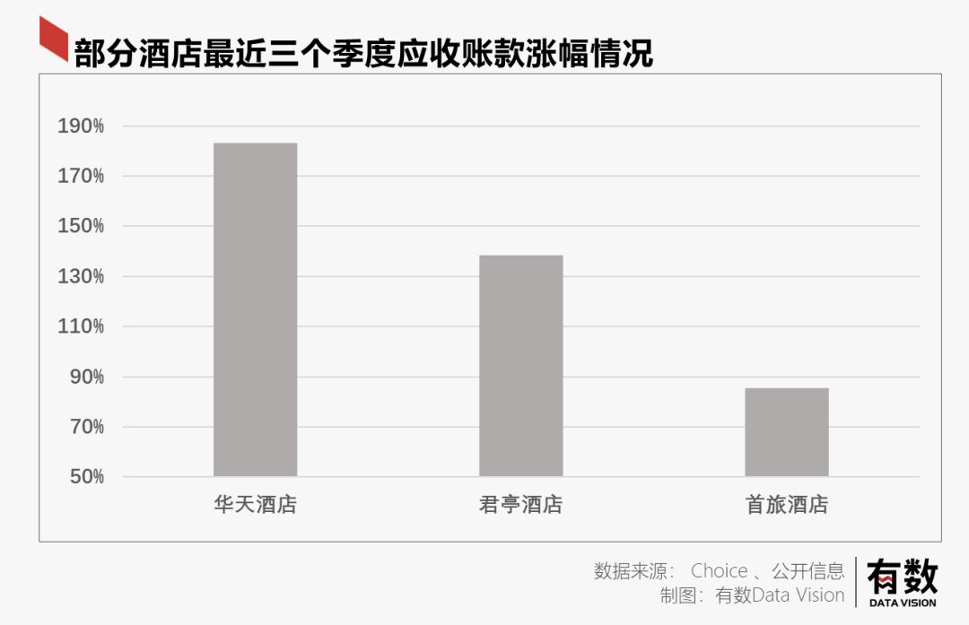 正常情况下,酒店直接面向消费者,通常都是提前收款,因此基本不存在应收账款的问题。但疫情期间,一些上市连锁酒店应收账款暴涨,如华天酒店涨幅超180%。