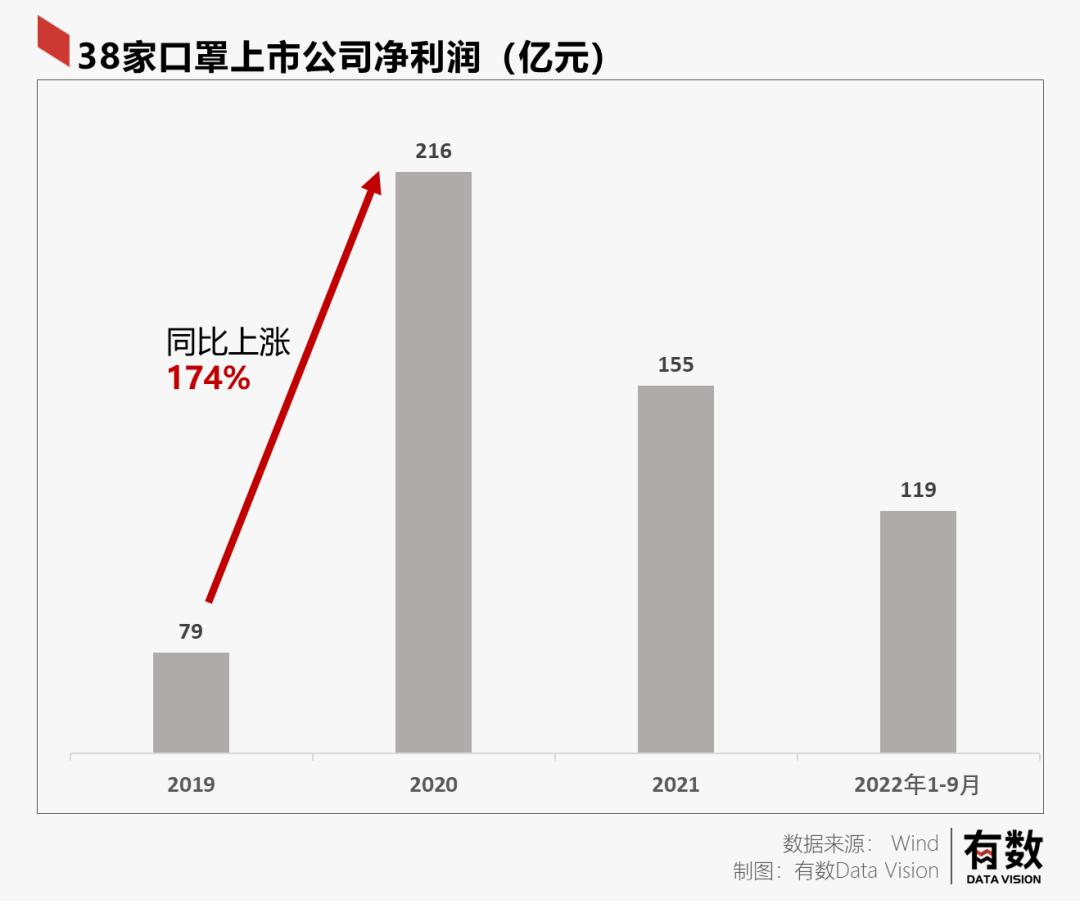 中国主营口罩制造的上市公司有38家,截止去年9月,这38家公司两年多的时间里,净赚了490亿元。