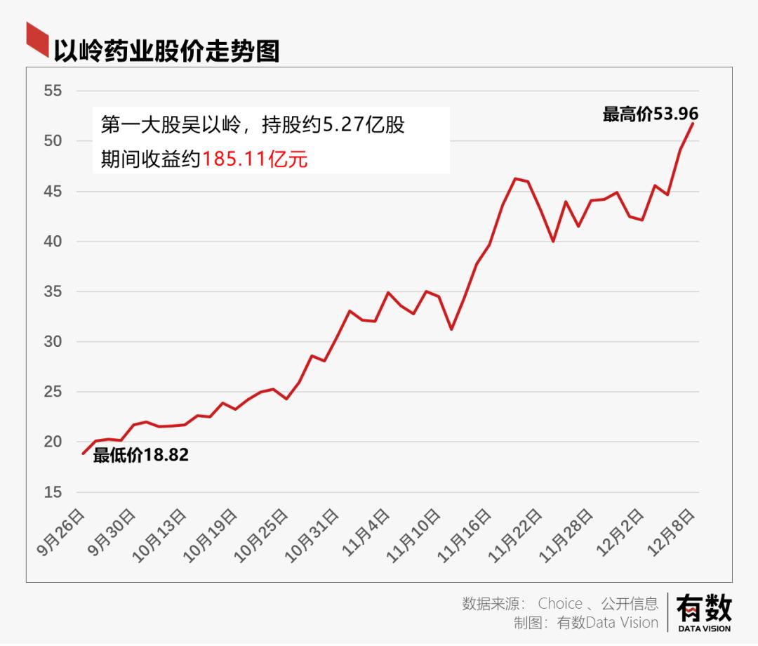 过去三年,以岭药业的净利润总和为39亿元。但大股东吴以岭凭借公司在二级市场的昂扬走势,三个月的时间,手中股权就增值了185.11亿元。