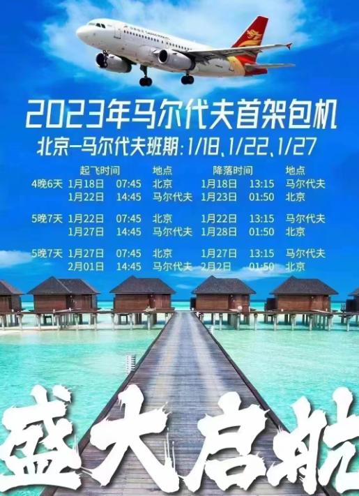昨天,旅界从多家旅行社同业获悉,今年1月18日、22日、27日,首都航空将开启北京——马尔代夫直飞首航包机,而国内多家旅行社均在朋友圈、同业群挂出了4晚5天、5晚7天的机酒套餐产品。