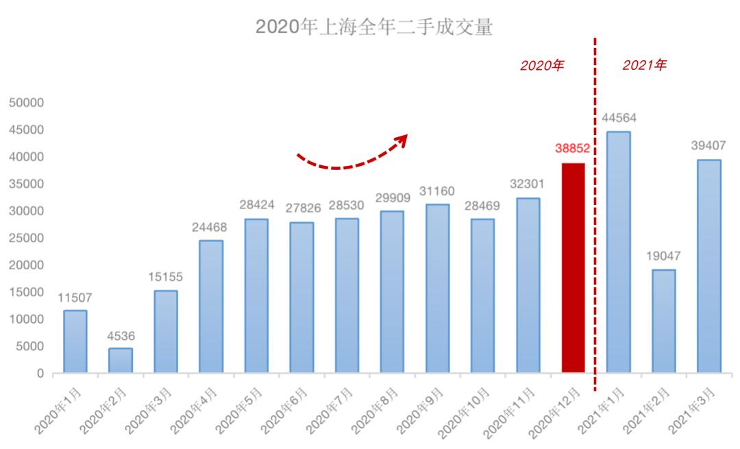 这是2021年的 上海二手房成交 。