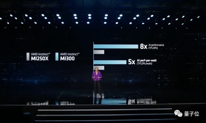 苏妈表示,相比于MI250X,MI300每瓦AI性能提升了5倍,AI训练性能整体提高了8倍。