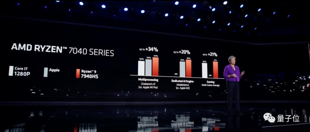 同样是在今年的CES上,AMD还直接对标苹果M系列芯片,推出了“世界最快的超薄处理器”——锐龙7040系列。