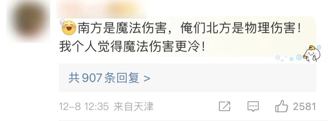 南方的冷是“熬一熬就过去了”,北方的冷是“熬一熬就真过去了” / 微博评论区