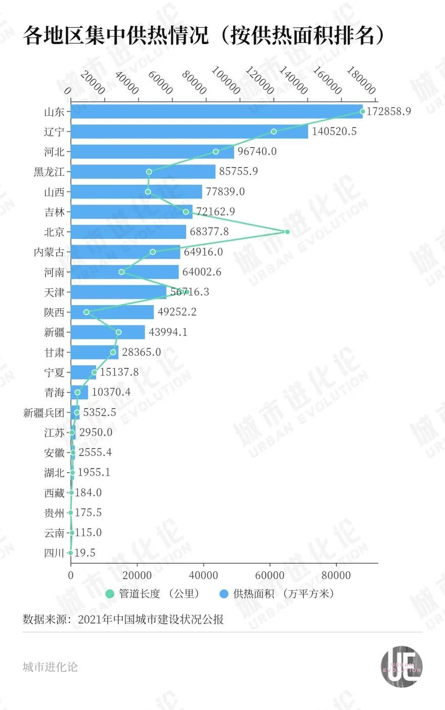 南北地区集中供热面积对比 / 每日经济新闻“城市进化论”