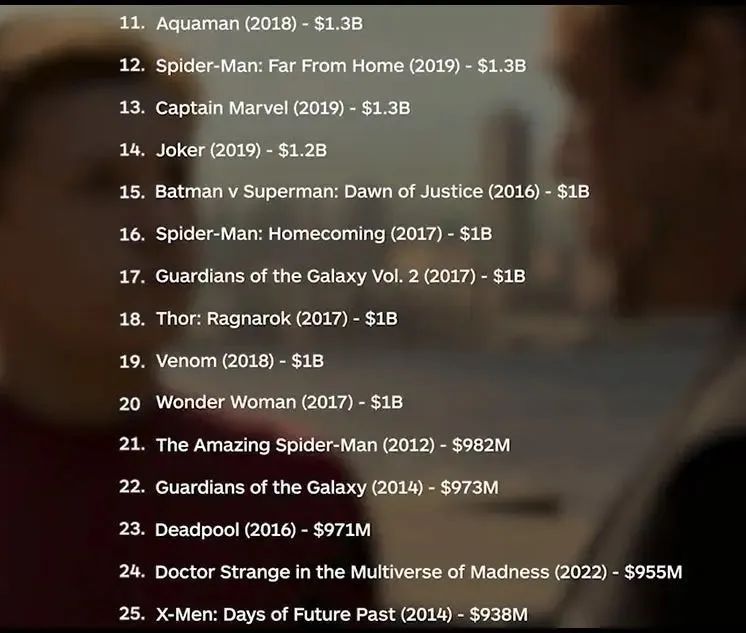 △ 最卖座的超级英雄电影全球票房排名TOP25,来自ign.com