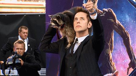 △ “滚导”特别知道怎么逗粉丝们开心,他曾在《银河护卫队》首映礼上带了活的小浣熊出场