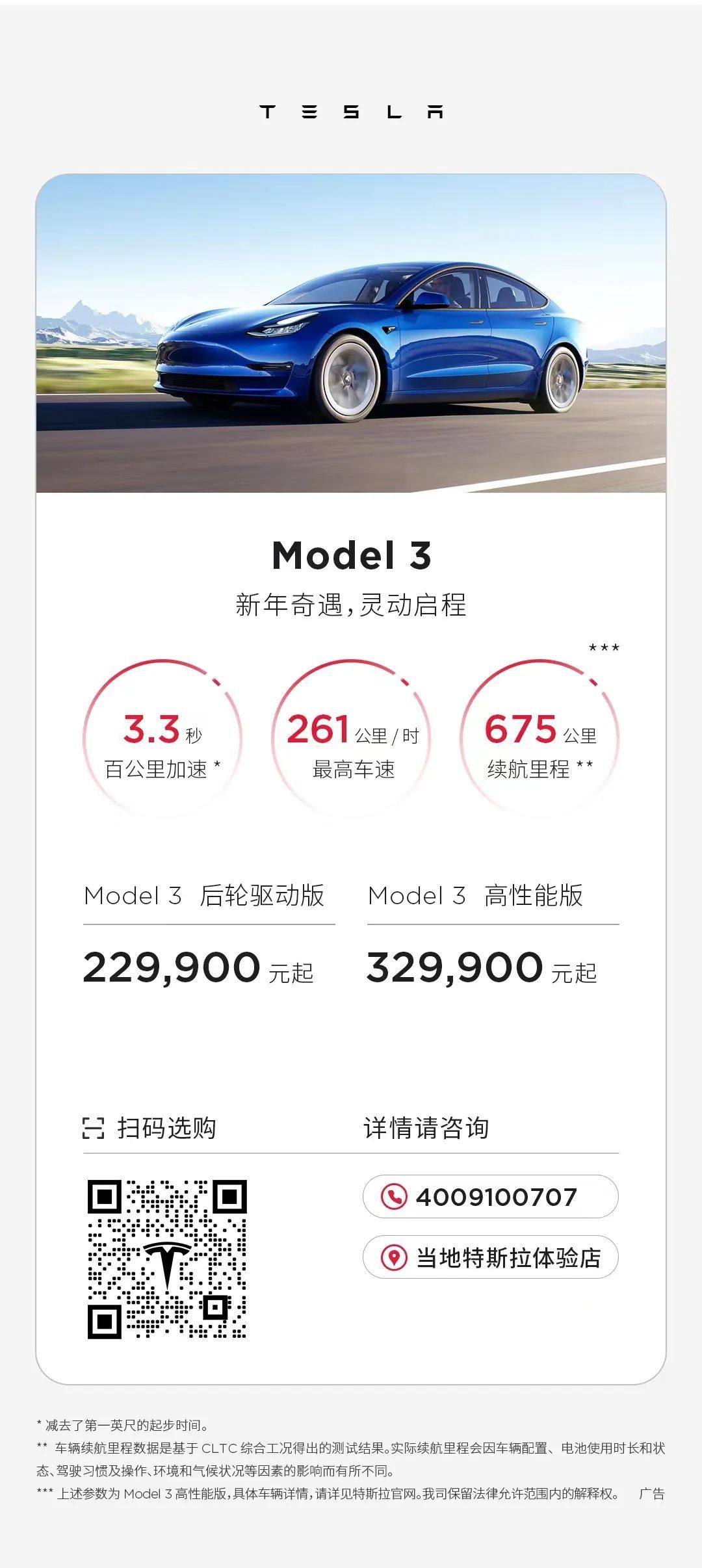 在具体降价幅度方面,Model 3后轮驱动版从26.59万元降至22.99万元,降价3.6万元;Model 3高性能版从34.99万元降到32.99万元,降价2万元。Model Y后轮驱动版从28.89万元降至25.99万元起售,降价2.9万元;Model Y长续航版从35.79万元降到30.99万元,降价4.8万元;Model Y高性能版从39.79万元降到35.99万元,降价3.8万元。