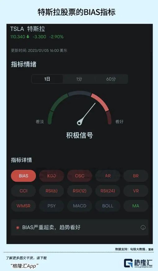 不过,从另外一个角度看,股价不断下挫,机会正慢慢呈现。不少的技术指标都在显示,特斯拉存在严重的超卖。
