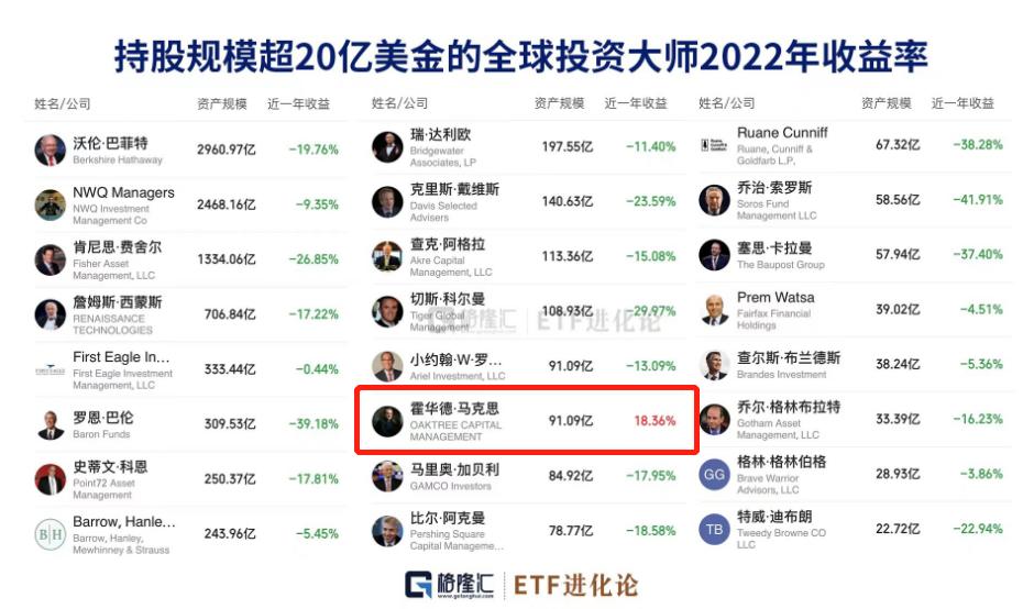 去年一年,美股遭遇了暴力下跌,很多华尔街大佬都损失惨重,巴菲特、西蒙斯、达里奥、木头姐、阿克曼,无一例外。但有一个人,逆势实现18.36%的年度收益,是万绿丛中一点红。