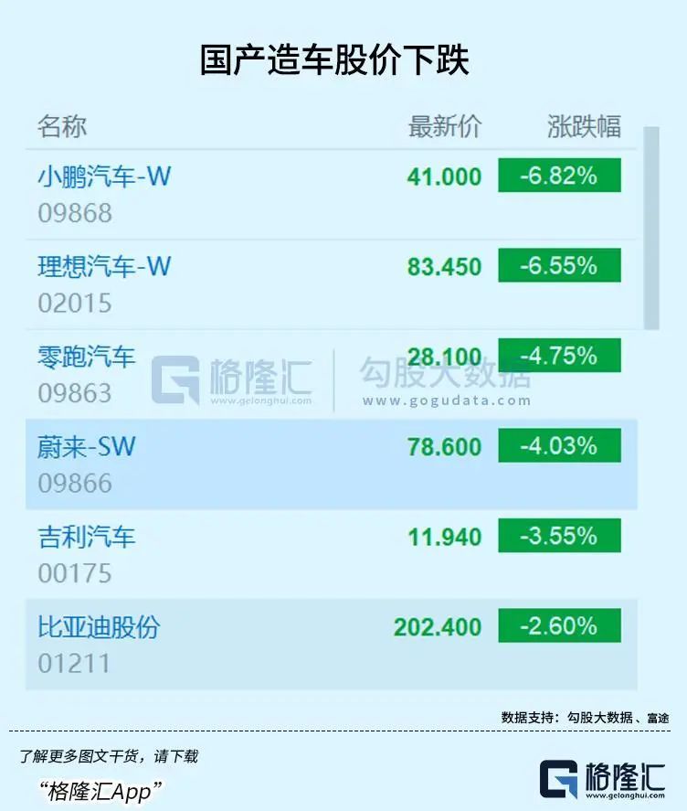 今晚特斯拉股价怎么走,不知道,反正一众国产新势力的股价先崩了。
