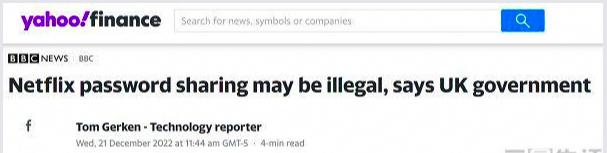 另据媒体报道,英国知识产权局(IPO)方面近日表示,用户向他人共享Netflix账号的做法可能是非法行为,而且可能既违反民法、也违反刑法。