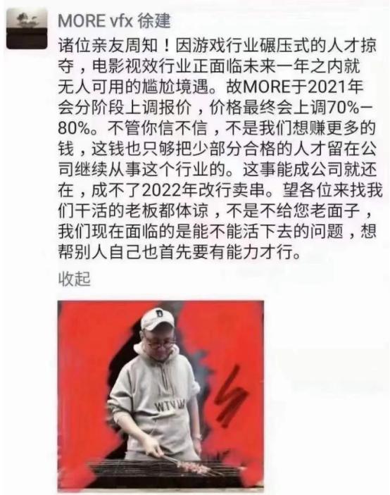 2020年、2021年的人才争夺战还历历在目,当时为了争夺人才,游戏大厂们奇招频出,不仅是最基础的薪资、分红上节节攀升的数字,在工作时长、日常福利上也能形成内卷,部分公司也顺应大势推出了内推奖励制度。当时的游戏行业就像黑洞,碾压式的吸收各个行业的顶尖人才,视觉特效公司MORE VFX的创始人甚至发文吐槽电影视效行业正在面临无人可用的尴尬境遇。