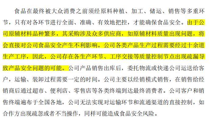 对于食安问题,白家阿宽在招股书上给予回应,称原辅材料众多,且来源为众多供应商采购,原辅材料的质量问题将直接对公司的食品安全产品产生不利影响,并且公司的各个生产工序环节等节点出现疏漏也同样会导致食安问题的发生。