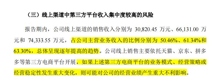 连白家阿宽自己都在招股书中坦言,过高的依赖线上渠道,是一项重大的风险点。
