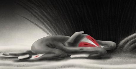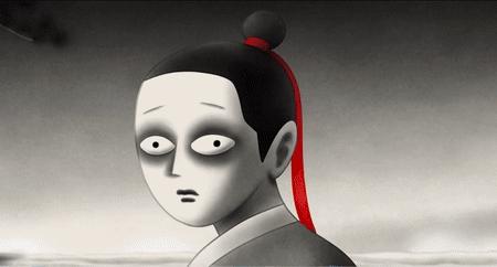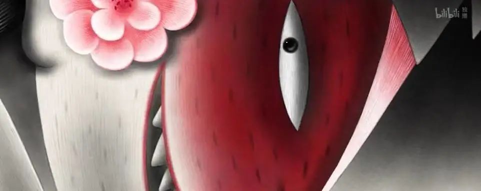内容改编自志怪小说的它,美术风格也向志怪小说靠拢,像水墨也像沙画,黑白灰加上鲜明的红,既诡异又灵动,黑眼圈浓重的人物形象则是哥特式美学的展现。