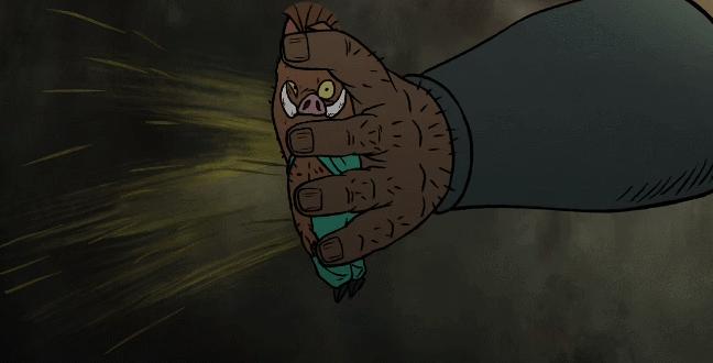 牛头怪抓着野猪妖刷锅的镜头涉及到较大的透视,野猪妖被摩擦时的形变和表情、牛胳膊和手的结构在运动中的转化都难度不低。