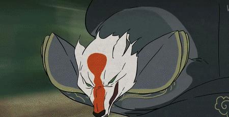 特别是狐狸公子,有些像是戏曲的俊扮,丹垩粉黛,鬓边簪花,变脸略显惊悚,醉酒时又不失可爱。