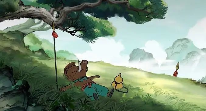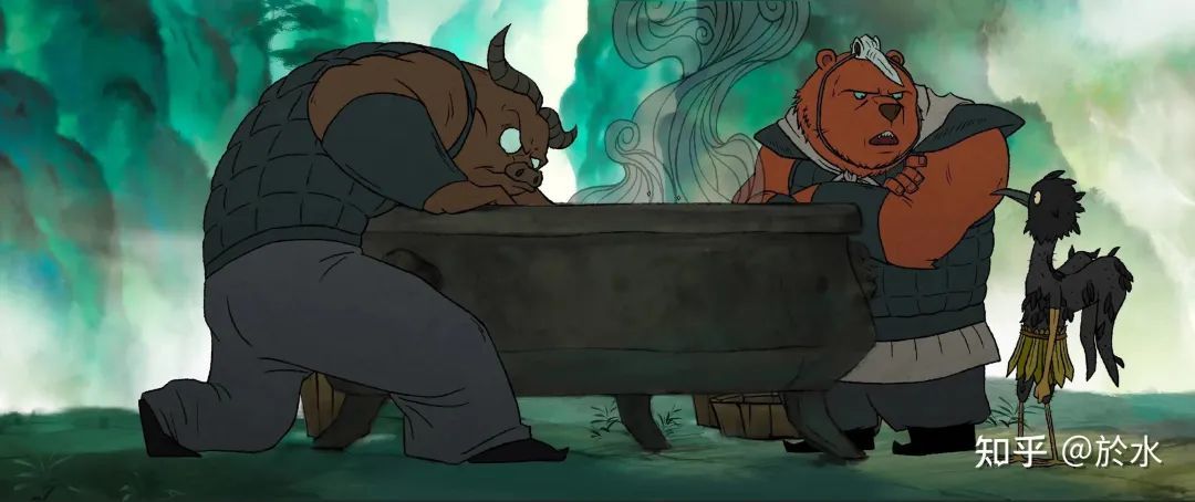 在传承这方面,我们可以看得到很多细节,比如牛头怪抓着野猪妖擦锅时冒的烟,画法借鉴了小时候的连环画,但让这种烟动起来绘制量太大,所以导演只在这场戏里用了一下。