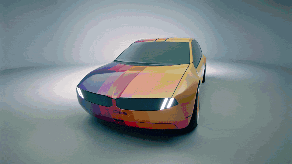 另外一项技术E Ink电子墨水屏的应用也能佐证这点,它是一项宝马在去年CES上亮相的技术,同样出现在了今年的「Dee」 身上,电子纸薄膜覆盖了整个车身,并且从BMW iX Flow简单的黑白交替,升级为了可变、可单独配置的彩色外观,通过不同的电脉冲,车身可呈现多达32种颜色,每一种都代表着不同的情感元素。