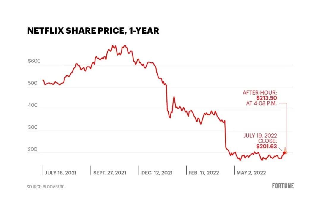 奈飞今年来的股价一直在走低(图源自财富)