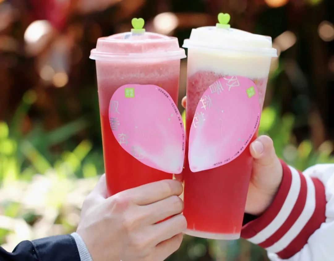 去年,益禾堂就上新过樱花玫莓,将玫瑰花露、樱花冻、草莓做搭配推出。奈雪的茶也将玫瑰、茉莉绿茶、草莓、覆盆子等元素组合,作为情人节新品推出。