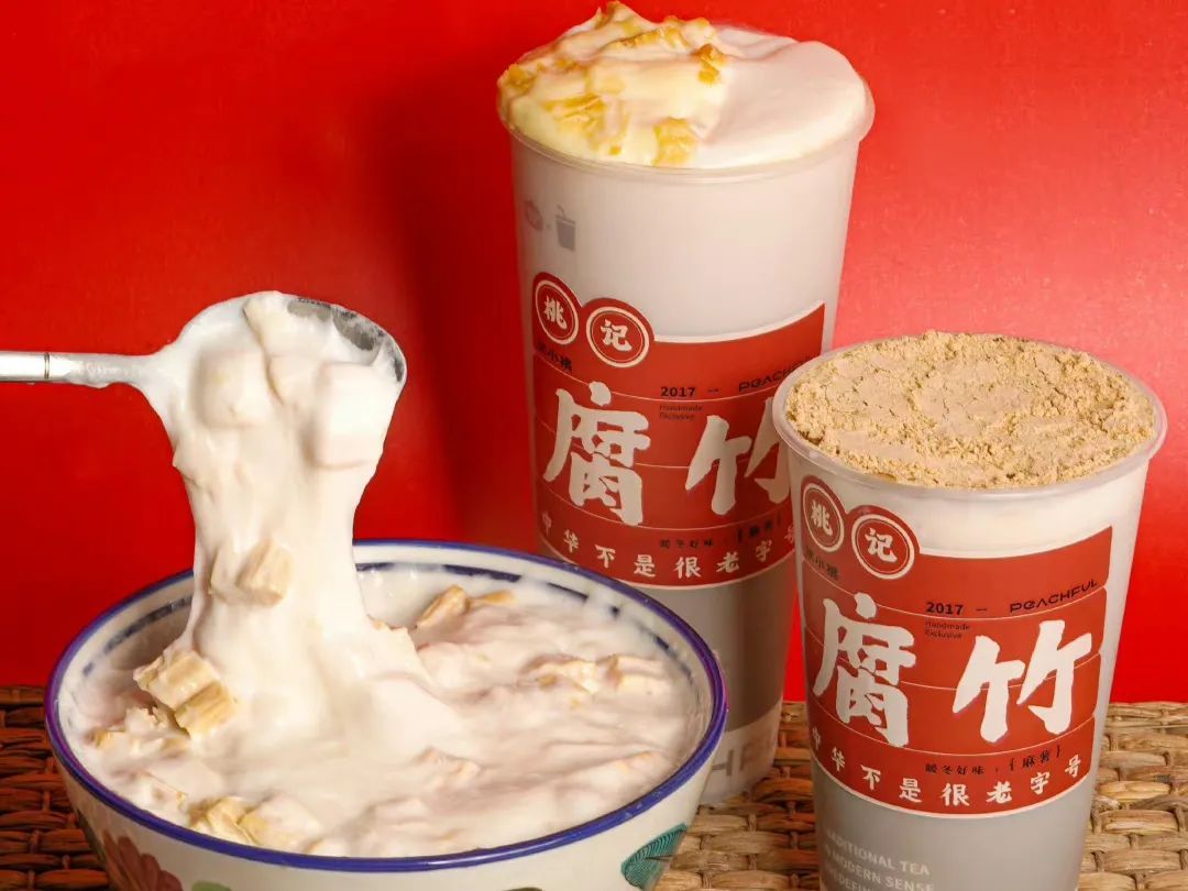 比如前段时间伏小桃推出的“腐竹奶茶”,小料有腐竹和麻薯同煮而成,颇具亮点。