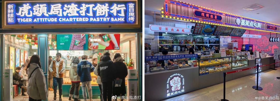 更离谱的是,有些新入局的商家甚至连名字都懒得起,只为了蹭热度。随着虎头局和墨茉点心局的走红,上海出现了“珍糕兴点心局”,广州有了“狮头点心局”,郑州的“山河饼局”,厦门的“三味酥点心局”,原本主打“抖臀蛋糕”的“南洋大师傅”干脆直接改装成卖中式糕点的“南洋点心局”。一时间,“点心局”在全国遍地开花,泛滥成灾。