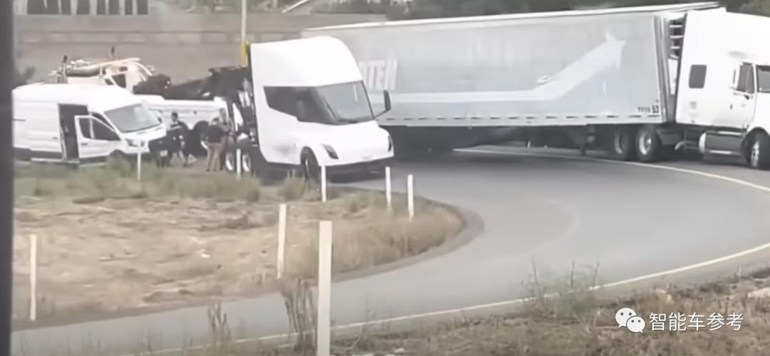 从视频画面可以看出,这台特斯拉卡车停留了很长时间,一直到傍晚时分,才被拖车带走。