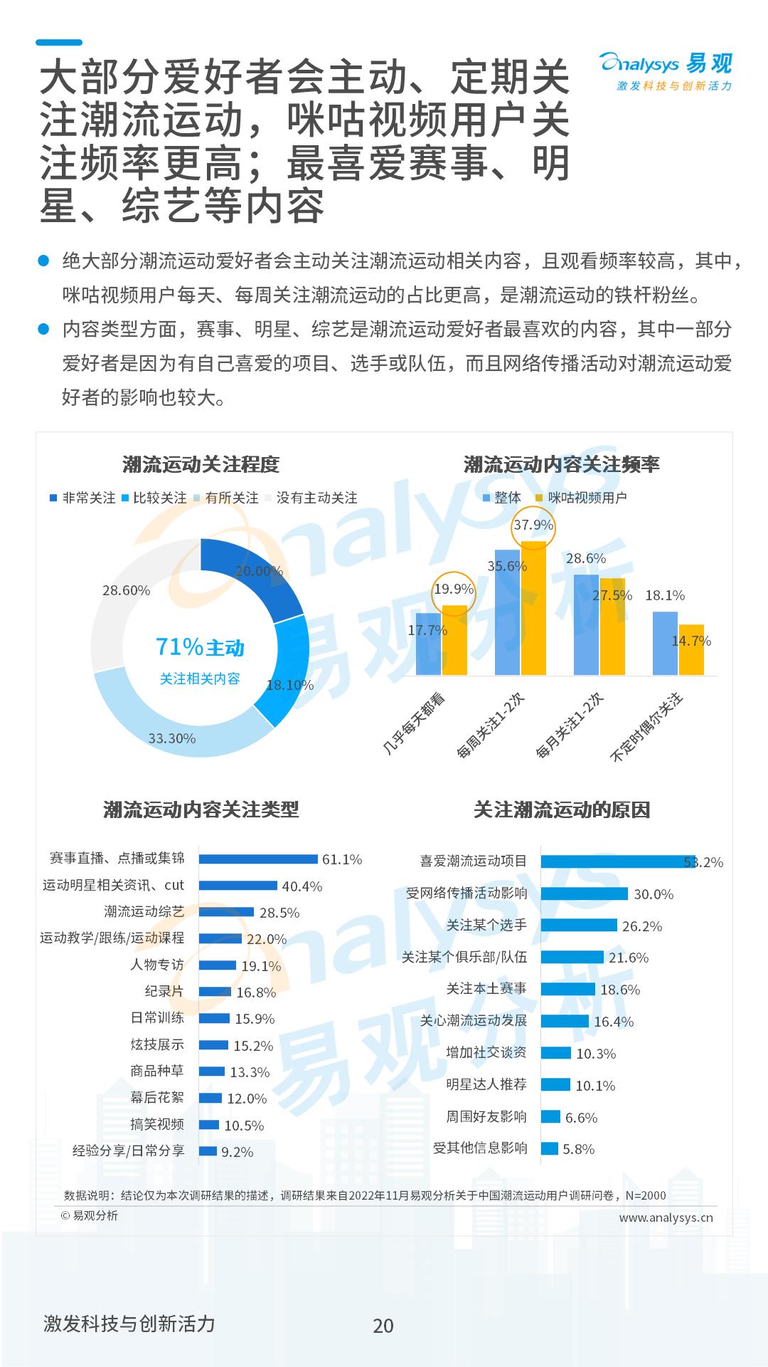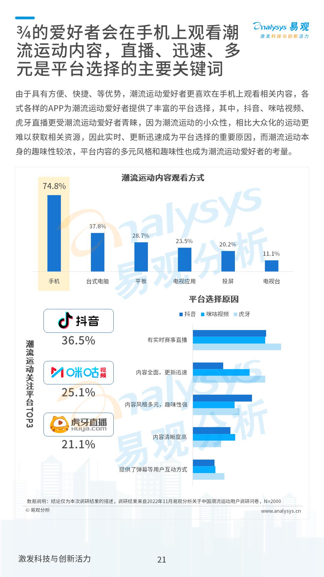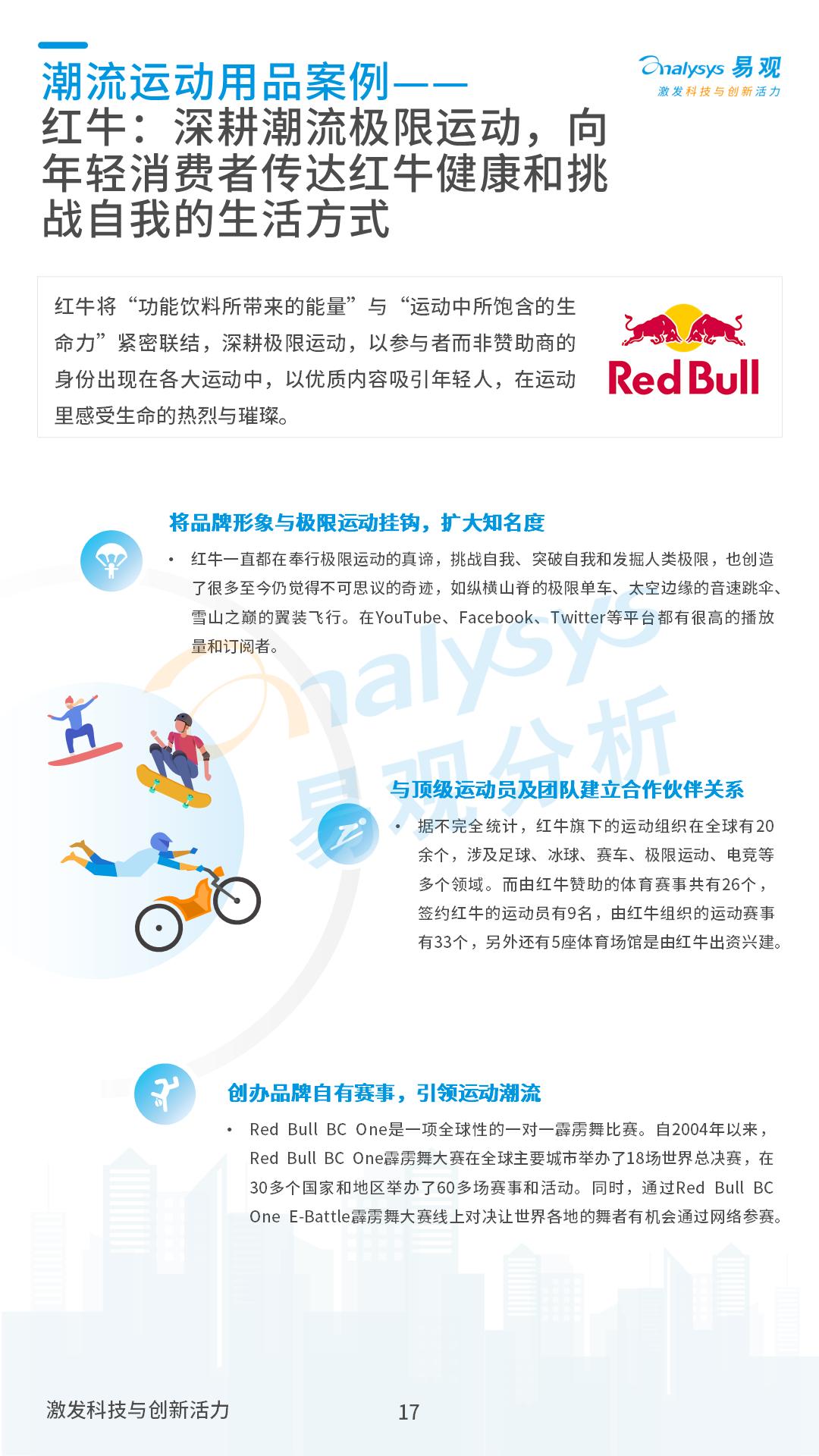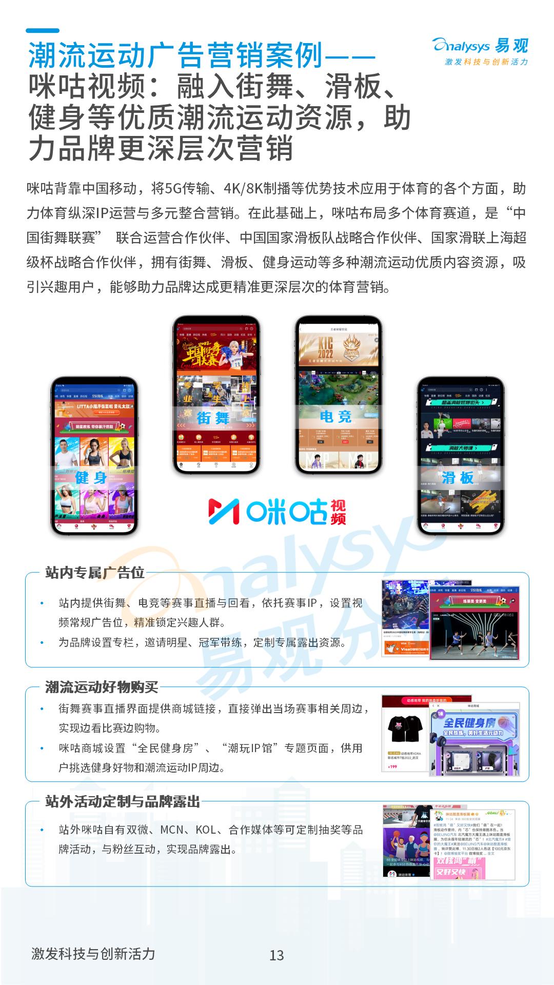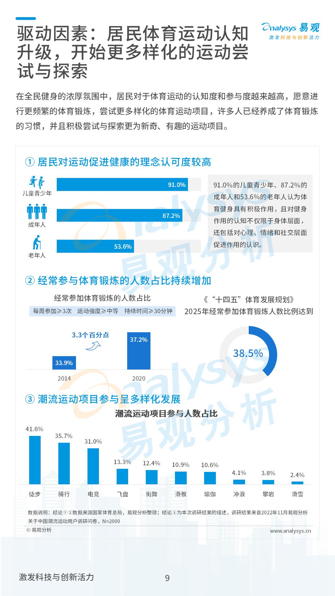 易观分析:近年来,潮流运动兴起,与传统竞技体育运动相比,潮流运动趣味性更浓、社交属性更强,而且具有休闲性、多样性、灵活性,在政策的引导、群众认知升级以及流行文化的驱动下蓬勃发展,目前已经具有广告营销、教育培训、体育赛事、运动用品等商业实践,正迎来发展机遇期。