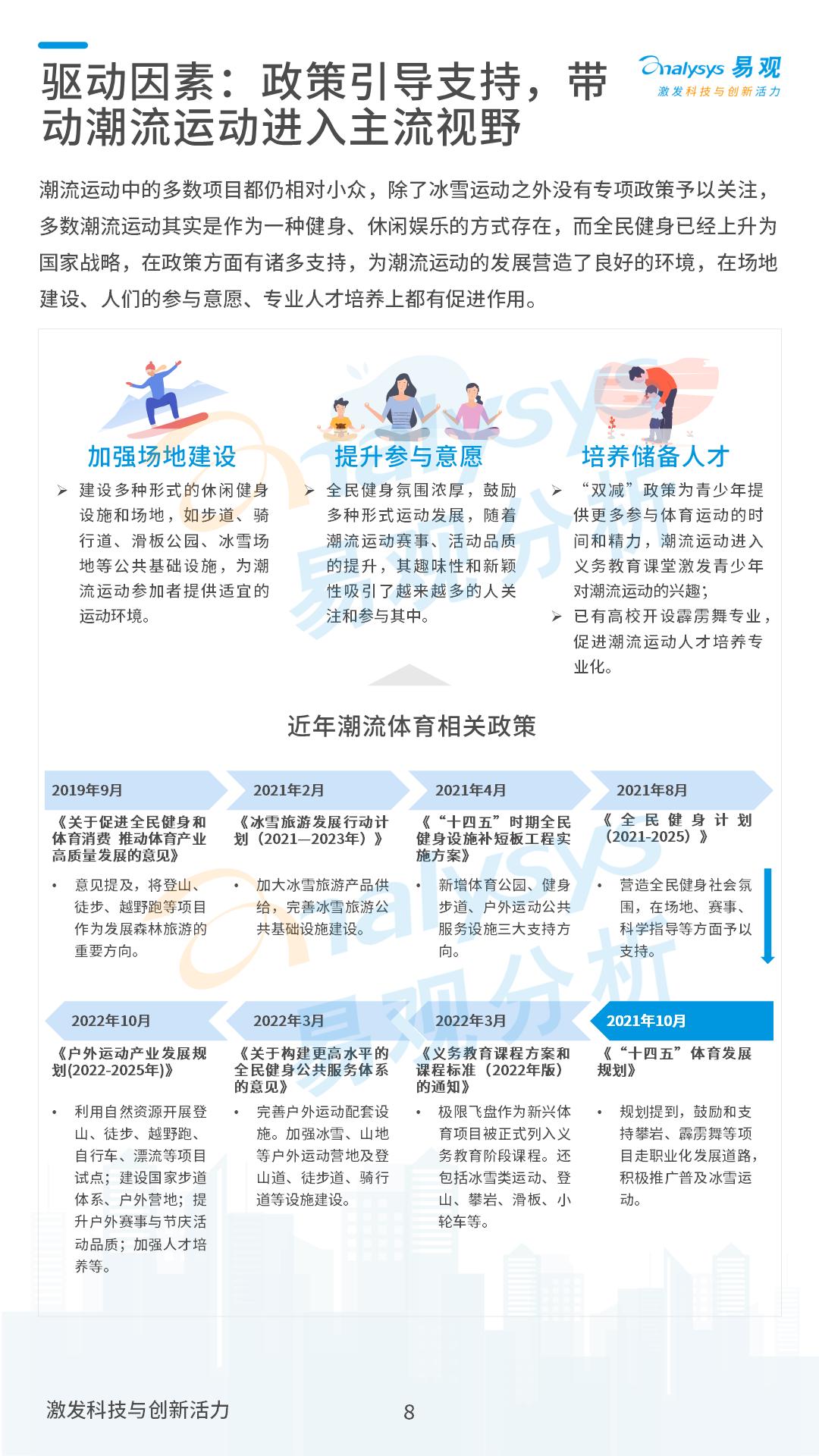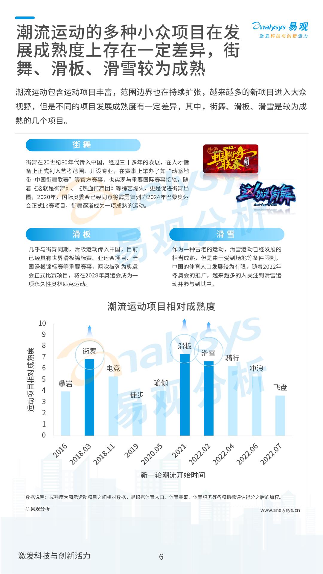 潮流运动具有新潮、趣味性、社交属性等特点,囊括项目丰富。