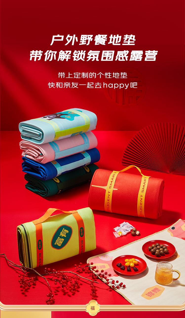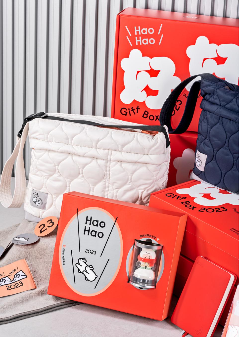 三七互娱的春节礼盒以「大展宏“兔”丰衣足食」为主题,一个巨大的胡萝卜手提包,体现了兔年IP的特征,「兔子+胡萝卜」元素还被融入到便携餐具和午睡眼罩等产品中,让整个礼盒既有颜值又十分实用。