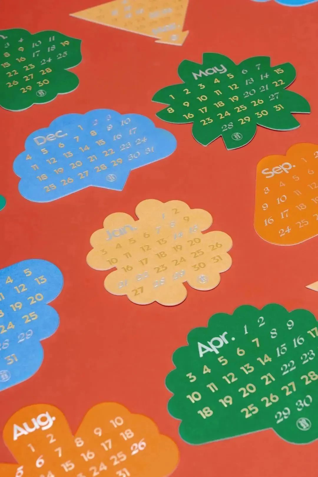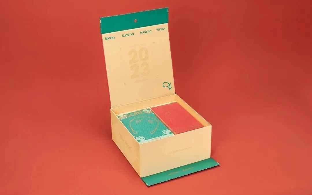 秉承着「环保再利用」理念,字节跳动将礼盒包装外壳巧妙设计为“挂历+写字板”,可循环利用。12张五彩缤纷的月历卡片,可以依次粘贴使用;内层覆盖循环可擦膜,使用马克笔即可记录。